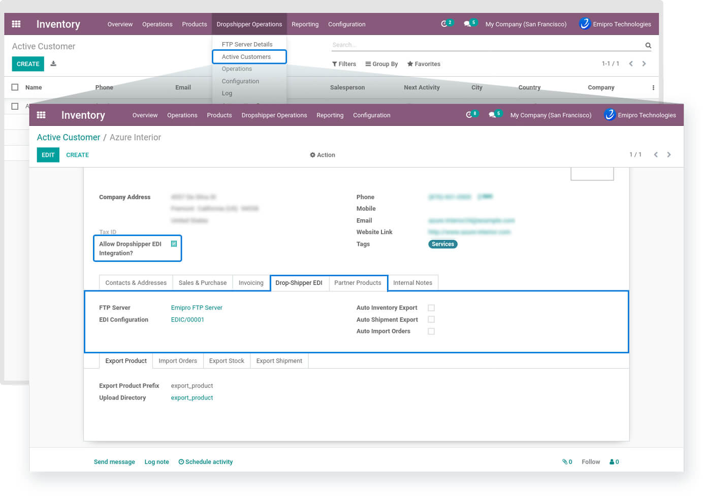 You can see here the list of all Customers for dropshipper. You need to do one configuration to see the particular customers inside this ‘Active Customers’ menu. For that, Go to the Sales ==> Customers ==> tick this option “Allow Dropshipper EDI Integration?” and that customer is visible here. When you tick that option then there are visible 2 tabs ‘Drop-Shipper EDI’ and ‘Partner Products’ and that tab inside needs to be the necessary configuration for dropshipper operation for a particular customer.