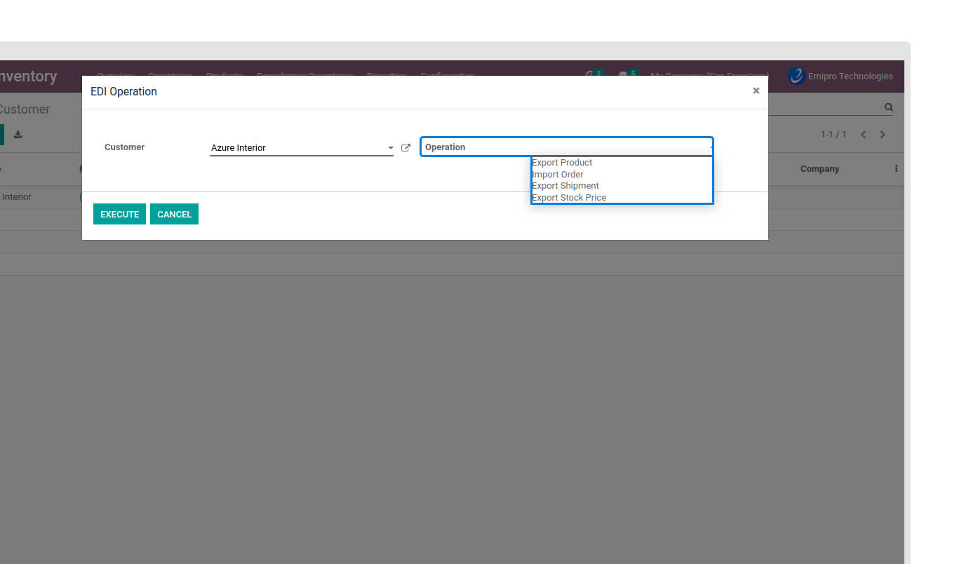 You can Perform Various operations from here like Export Product, Export Stock & Price, Import Orders, and Export Shipment, etc. for dropshipper with a particular select customer in the wizard. When clicked on the Operation menu then it will populate an operation wizard. In the wizard we need to first select a customer then it will be visible in the operation menu and in that, we need to select the operation which we want to perform and as per the operation selection wizard will display the other option.