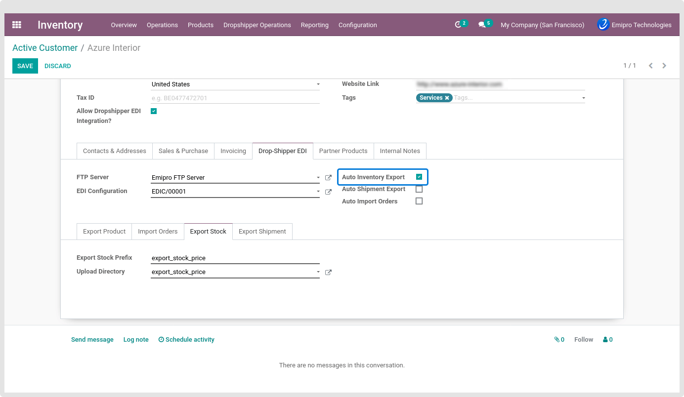 For automatically exporting stock and price purposes, You need to one time configure a common export shipment scheduler under Inventory ==> Dropshipper Operations ==> Automation Group. You can find more details about ‘Automation Group’ related in index 6. After configuring ‘Automation Group’ you need to just tick the “Auto Inventory Export” option in particular customers for export inventory automatically.