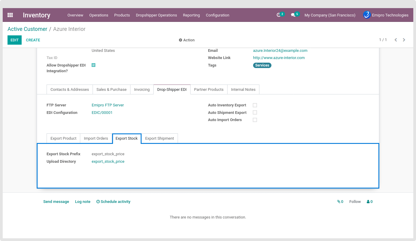 You can export stock and price from odoo to FTP/SFTP directory manually or automatically.