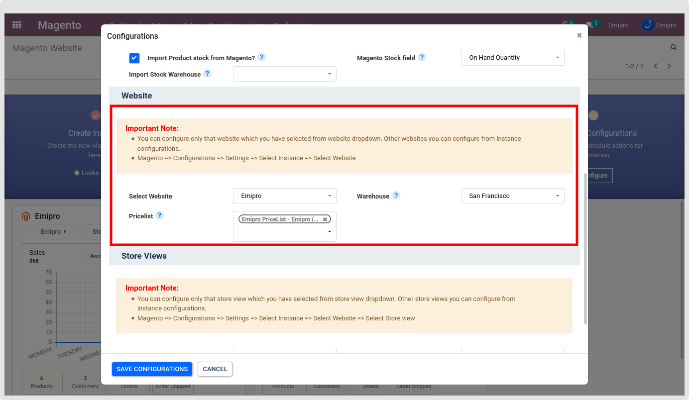 - Use Odoo Default Sequences? : If it is checked, the imported orders from Magento will be seen the same as Odoo default Sales Order. To visibly differentiate it, we recommended not to use this option.