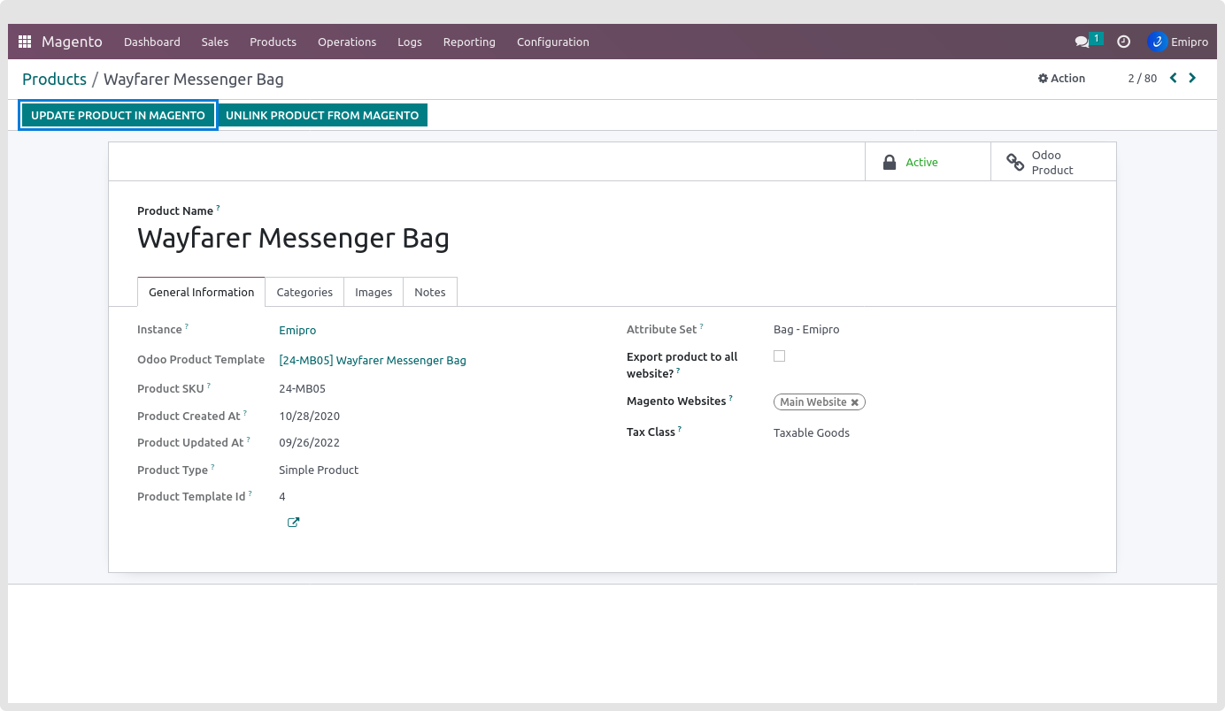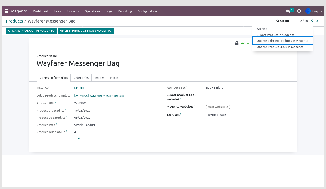 Now all the pre-required data is imported from Magento to odoo. Now we can create new products and then export Them or update existing products in Magento.