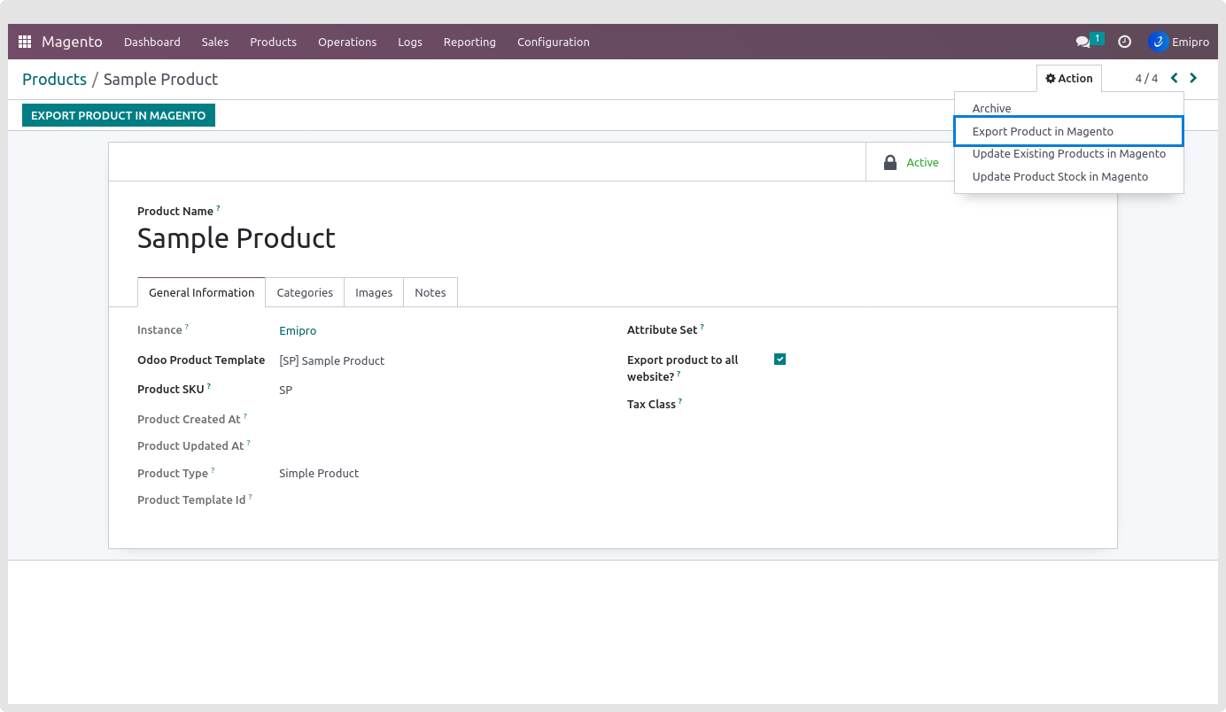 There are some basic required details needed for the Product Export from the odoo to Magento. See below are the basic requirements.