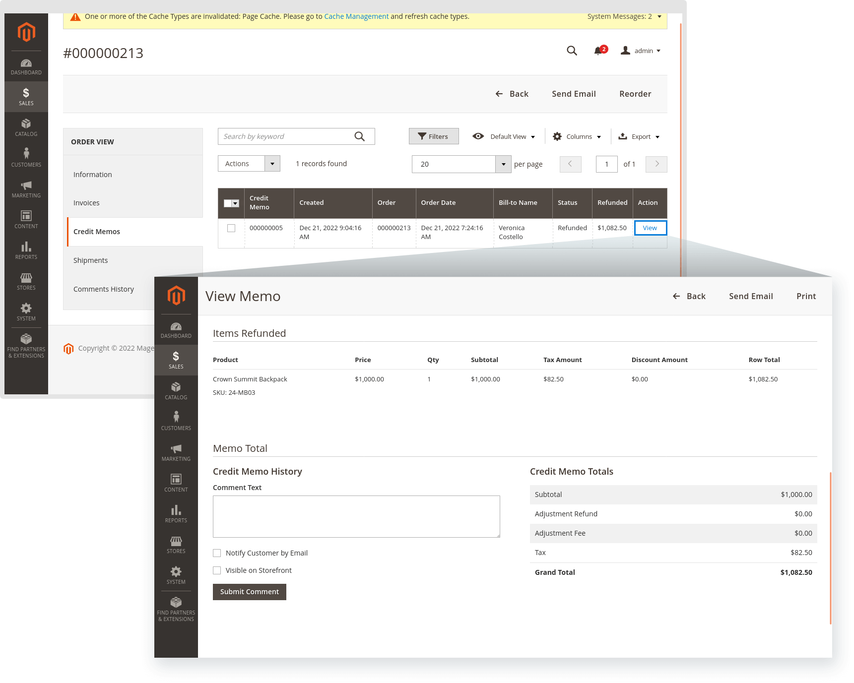 - Magento allows you to create a credit memo only once. In the case of partial refund Magento allows to create multiple credit memos.