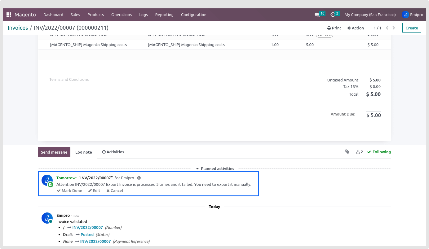 When invoice is not exported after 3 attempts then scheduled activity will be created.