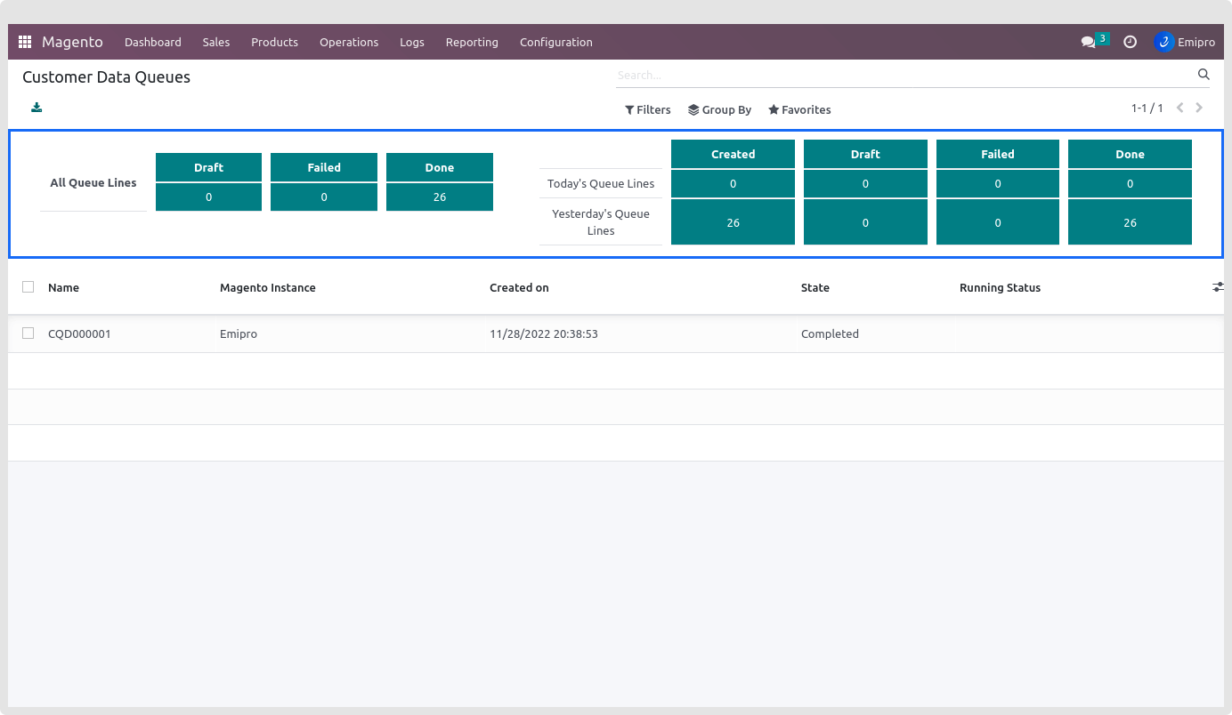 Introduce a whole new feature of queue line dashboard which allows users to visualise their draft, failed and done queue lines as well as statistics of today’s and yesterday’s created, draft, failed and done queue lines of product, order and customers.