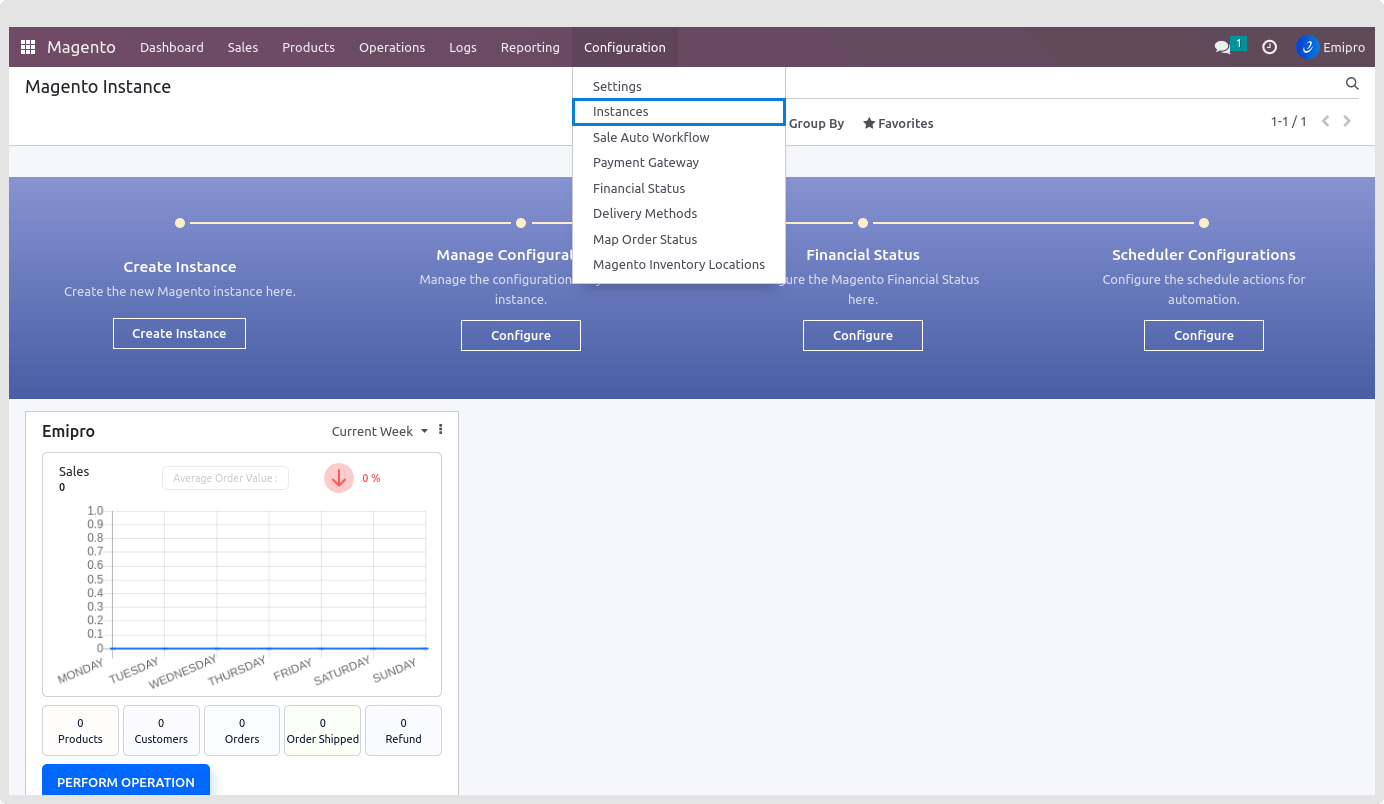 - Archive the Instance from the tree view of the Magento Instance. Go To Magento > Configuration > Instances.