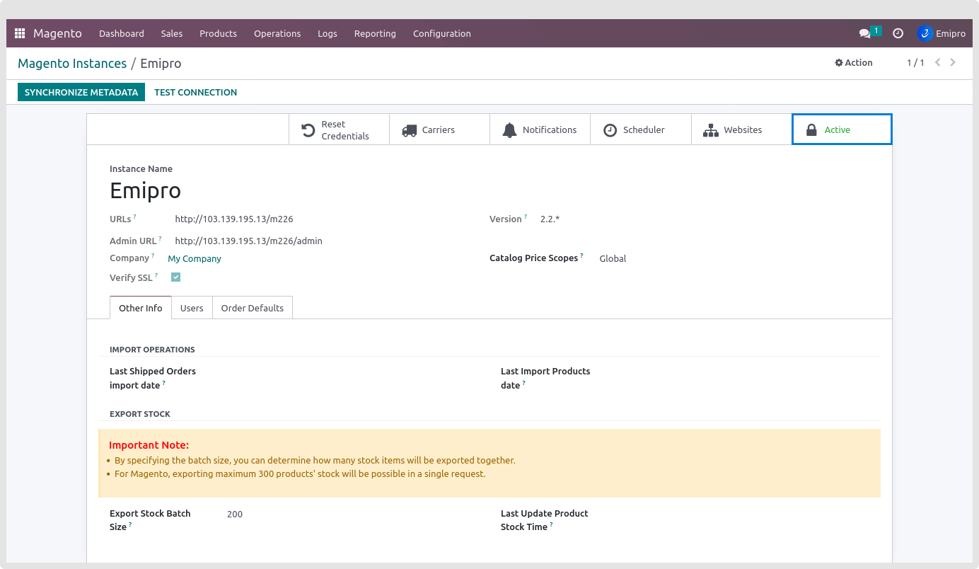While Unarchiving the Instance Check the Connection between Magento and Odoo, Active Magento layer products and it’s variants. Also, Activate related Payment Gateway, Financial Statuses, Inventory Locations, Websites, and Store Views.