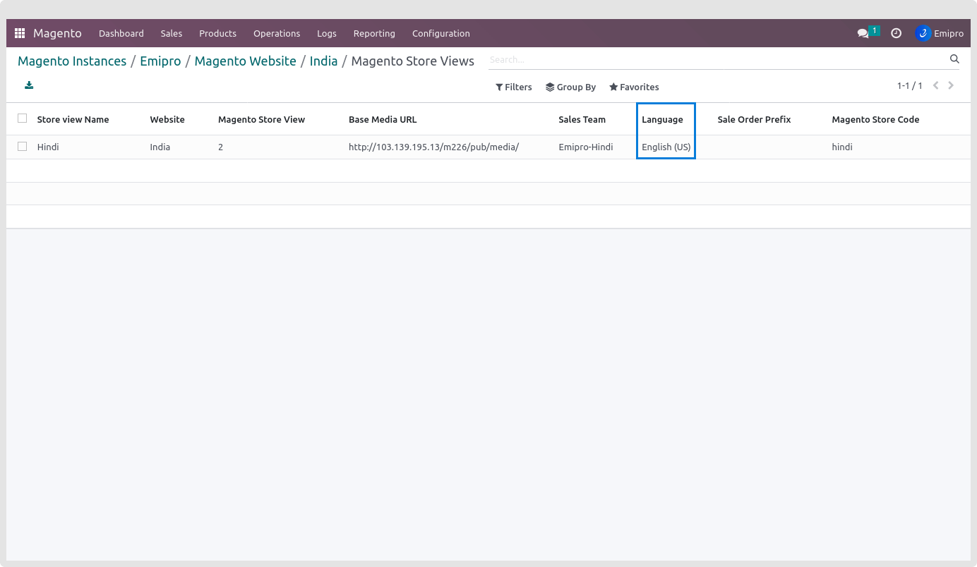At magento, website wise the language may be different and so the store wise. Customer would like to receive the invoice in the same language as of the store from where he has placed the order. The same facility is provided in Odoo Magento connector. Store wise language will be fetched from Magento while creating instance in Magento connector in Odoo. The fetched language in Magento connector can be found here: Magento instances > Select instance > Magento website > Select website > Magento Store view > Select store view