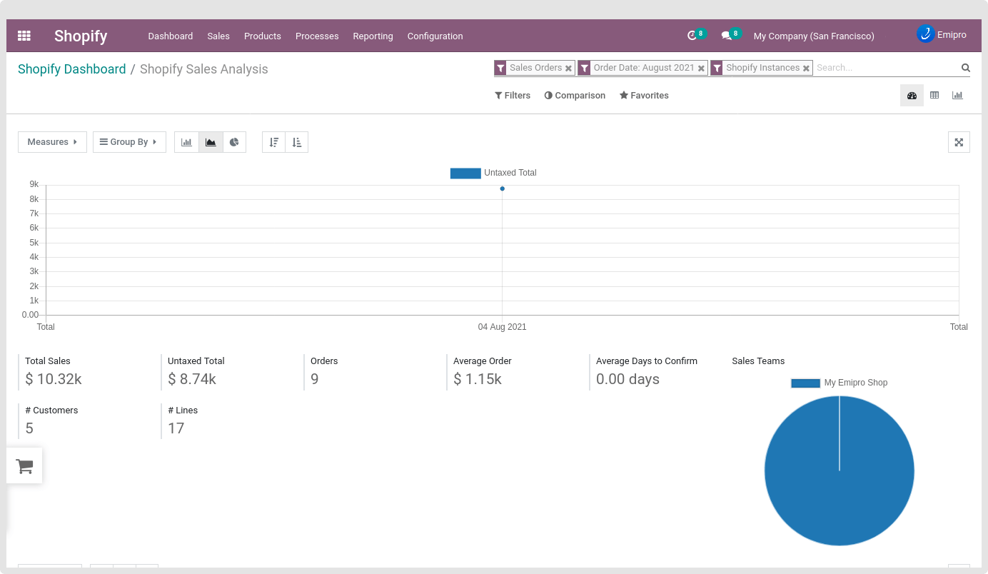 Keeping track of your sales is key for any business to analyze your sales and get meaningful statistics. Catch the dedicated Shopify Sales Analysis in Odoo to know how your business is faring. See it in various modes.