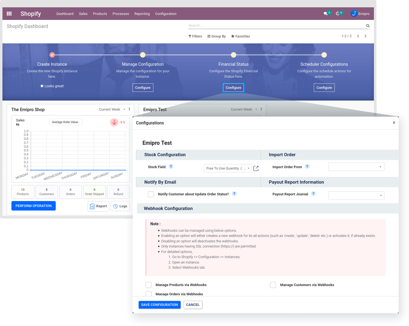 Post this, configure the Financial Status for the instance by clicking on the Configure button. In the same way, you can configure the Automatic Jobs for all your Shopify Odoo operations.