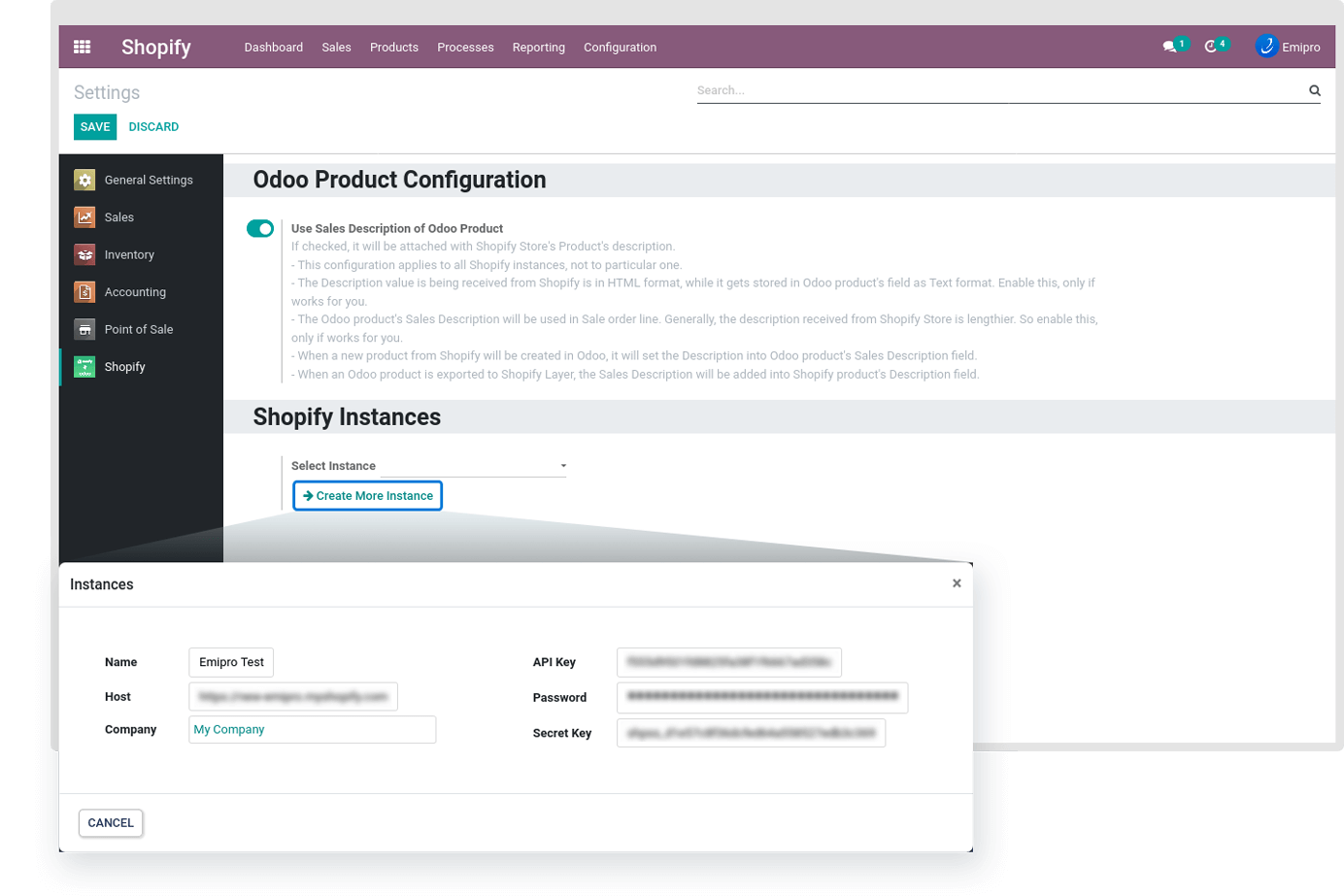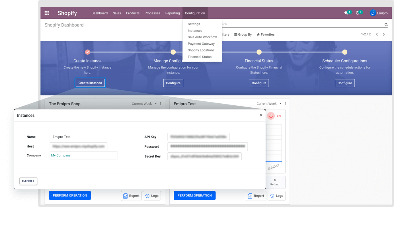 Other than this, you can also create the instance from Shopify / Configuration / Settings.