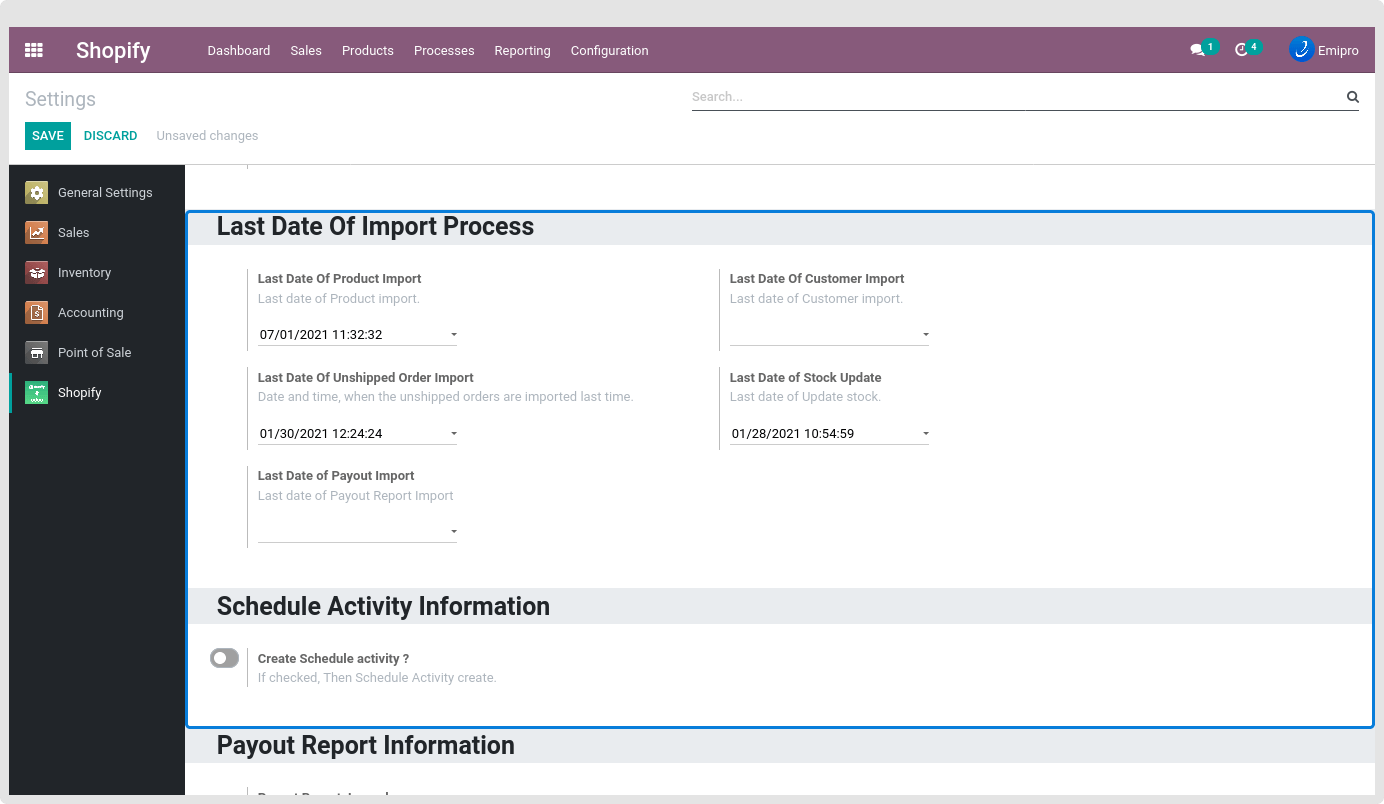 If you enable the Create Schedule Activity?, the button will create scheduled activity in your Odoo for various operations.