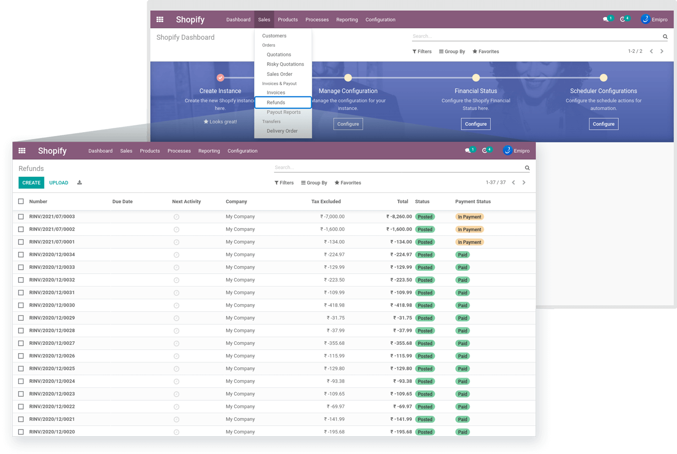 Navigate to Shopify / Invoice Details / Refunds and you will see all the refund orders of Shopify.
