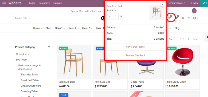 This feature allows the customer to remove the product from the cart, increase/decrease the product quantity from the cart without navigating to the cart page. To enable/disable the Advance mini cart functionality, go to Web Pages -> Customize - > Customize Theme -> Manage Theme Features. Where you can find configuration named Advanced Mini Cart.