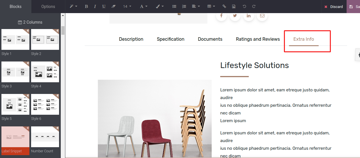 - Step 3: Go to the product page in the website & click on the Edit button from top right. You can configure the snippets inside the product tab as shown in below screenshot.