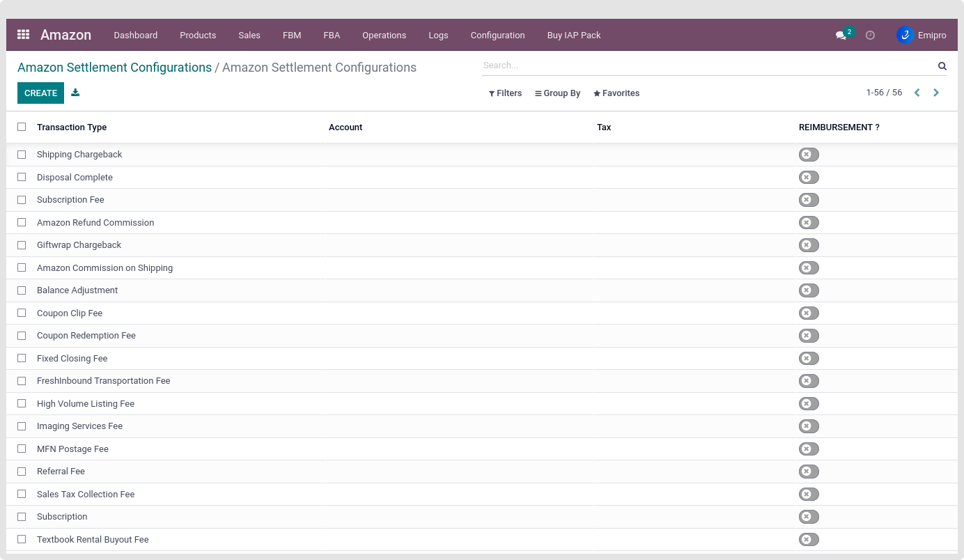 - In case of reimbursement which has been performed by Amazon, the system will create an invoice and Amazon will be set as a customer.