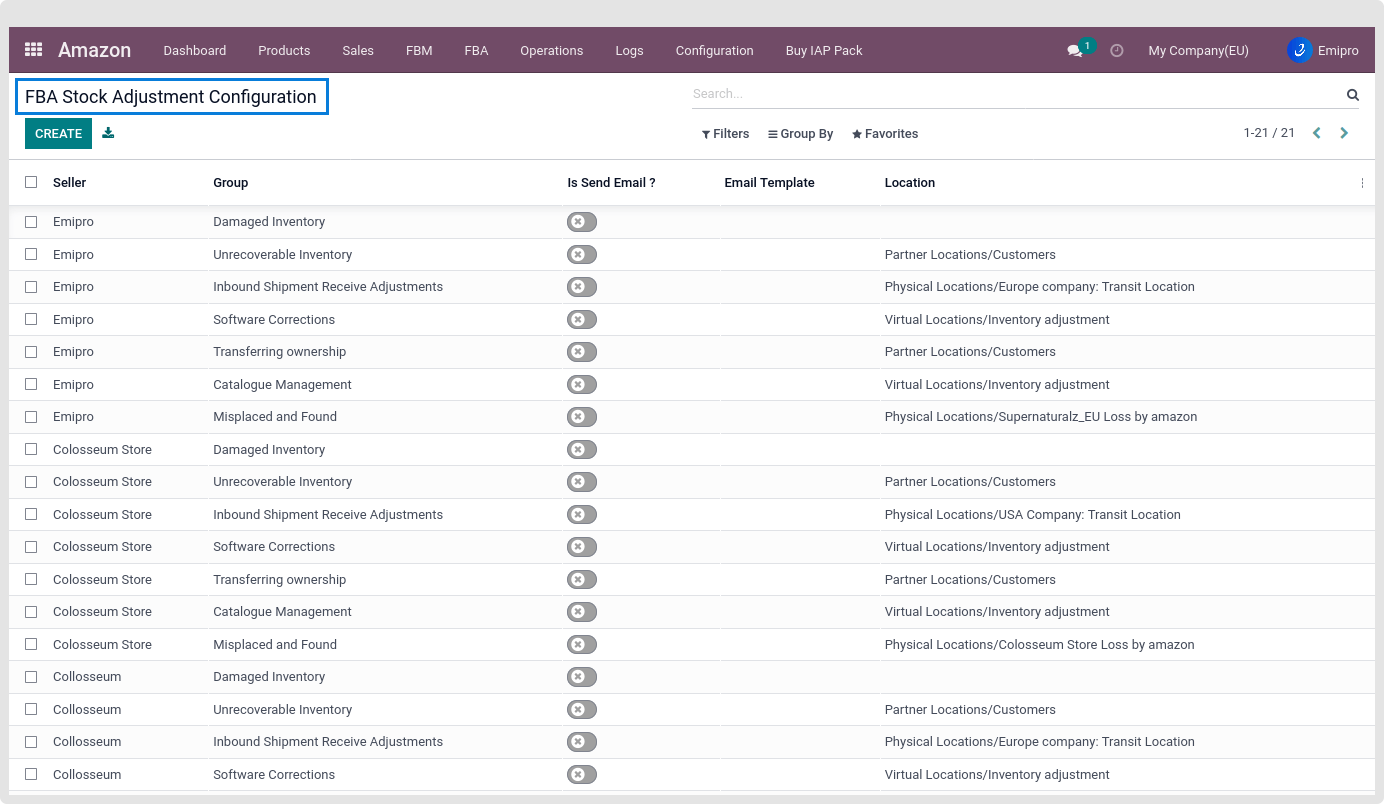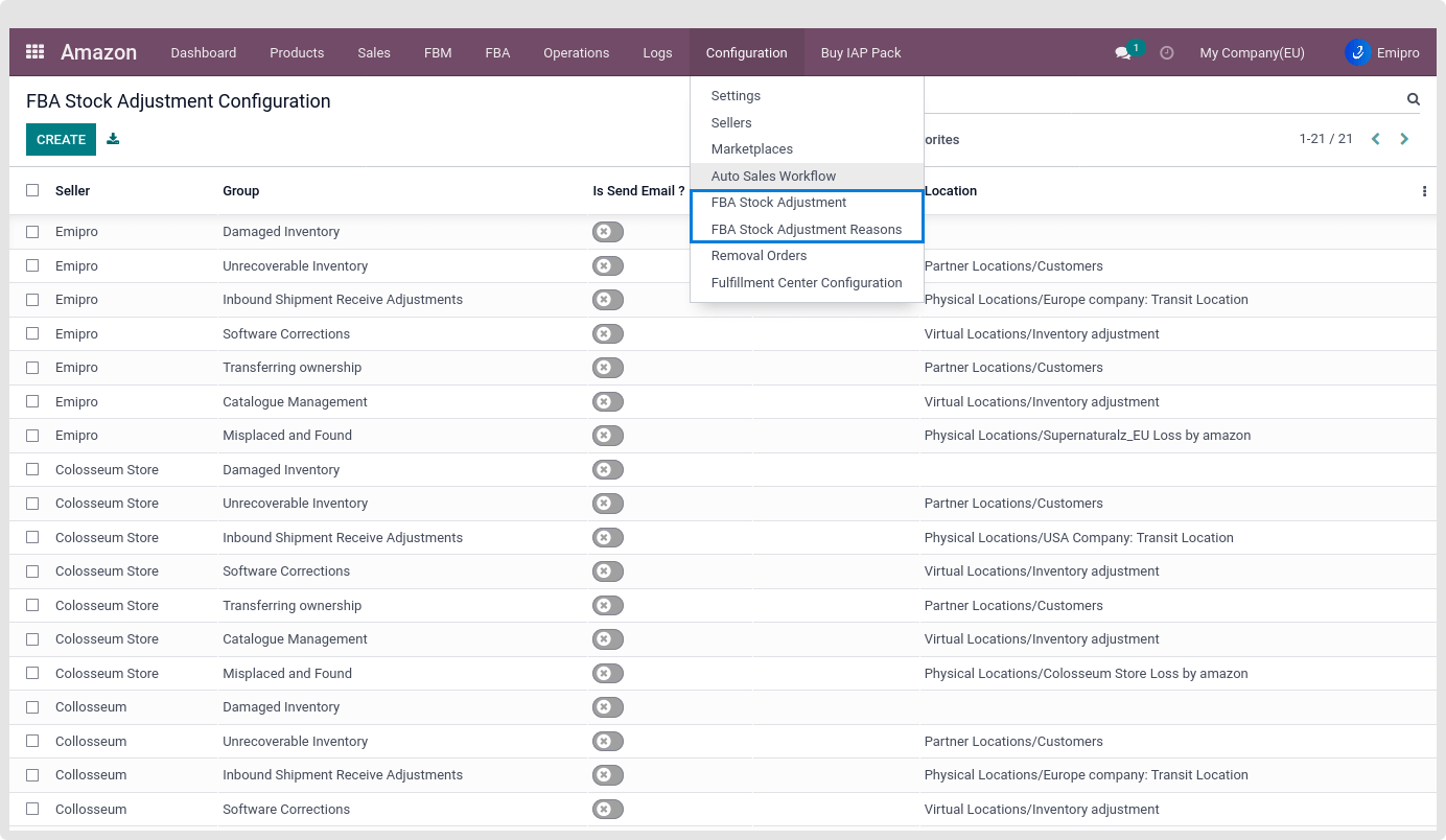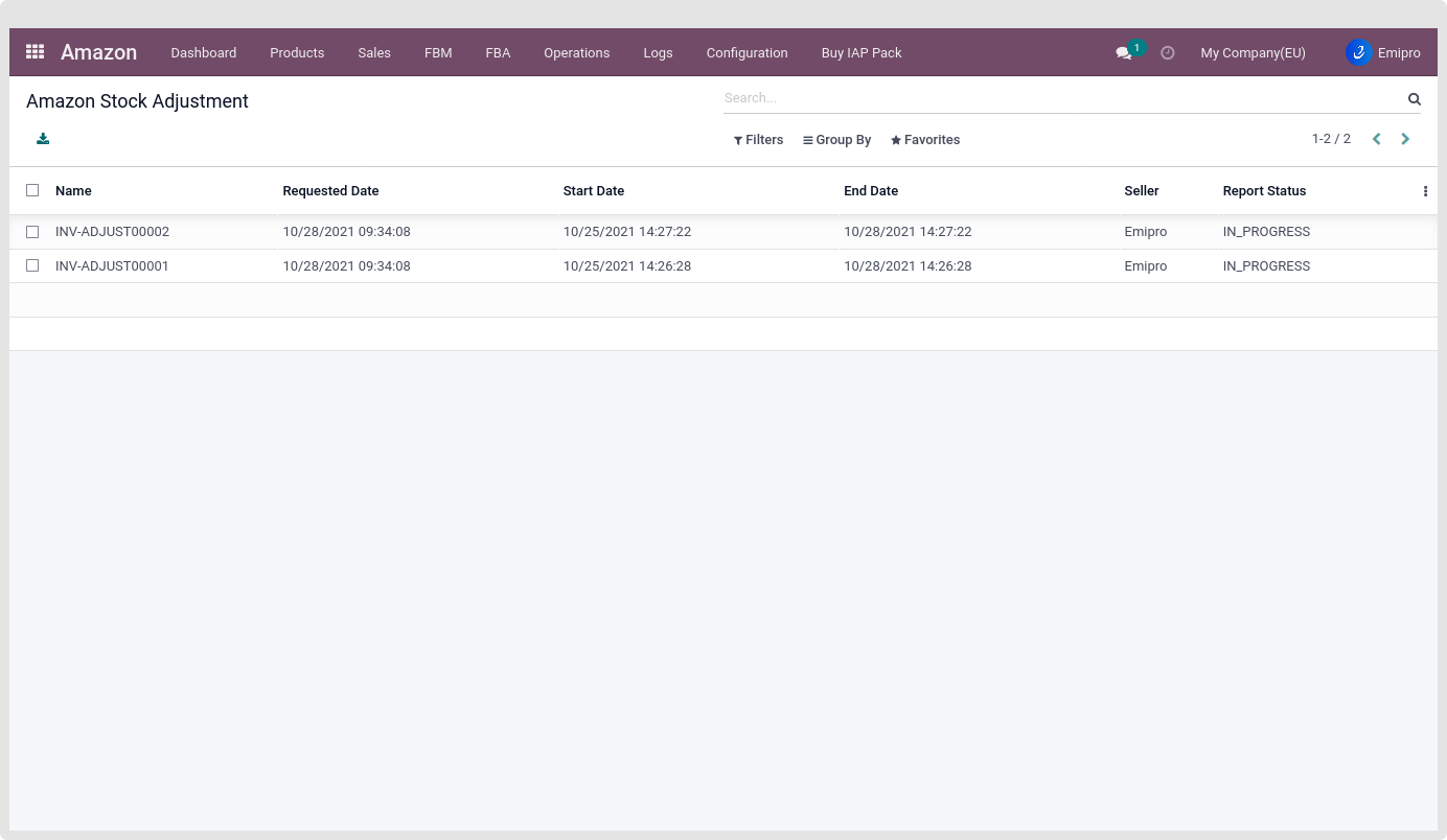 - Amazon prepares reports for those on FBA inventory adjustments and updates the latest usable stock in it. So, based on this, the user can carry out stock movements accordingly in Odoo.