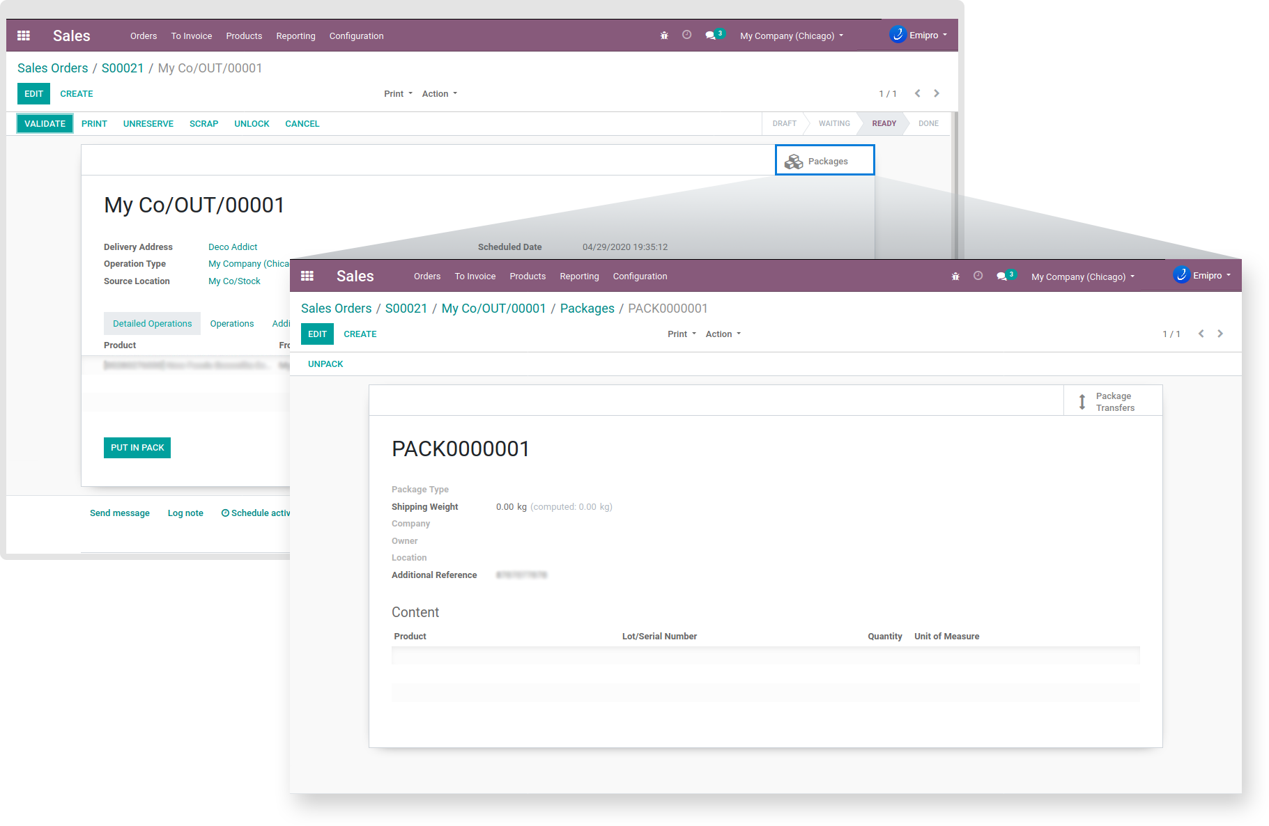 Once the unshipped orders are imported into Odoo, The user can update the tracking number for each delivery order.