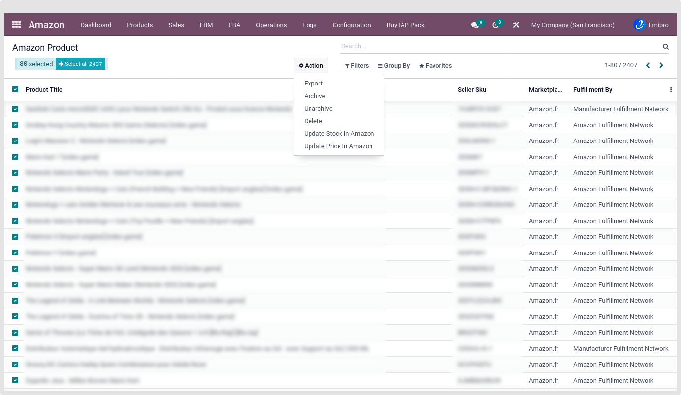 - The user can select specific products from the Amazon product list and click on the Update Stock in Amazon option. As the product over here is associated with a single marketplace, it will update the stock for that concerned marketplace only.