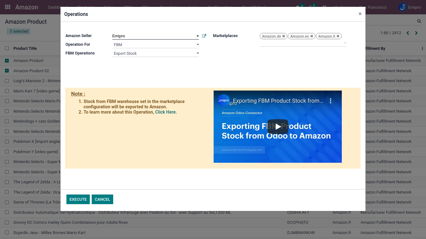 There are 3 ways to update stock from Odoo to Amazon: