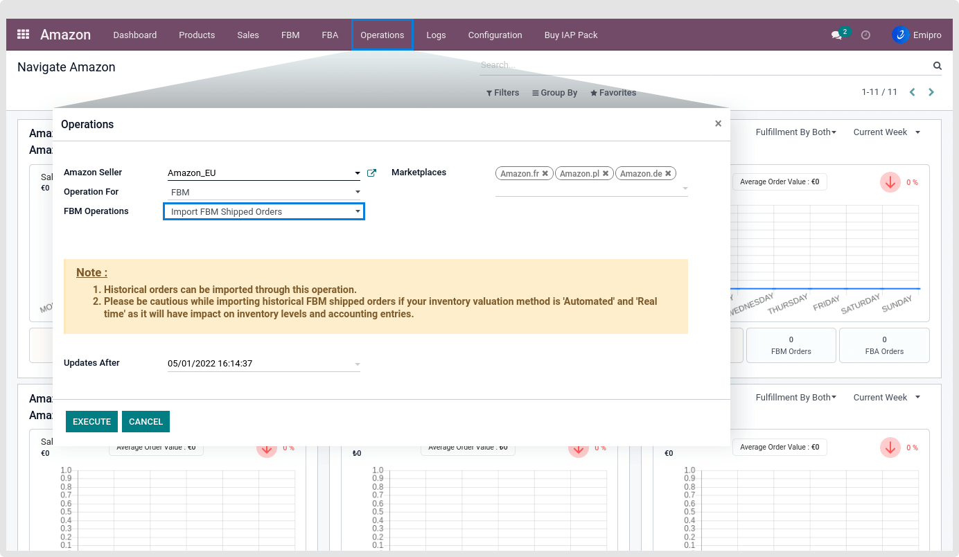 Step-4: Select FBM Operation for Import FBM Shipped Orders