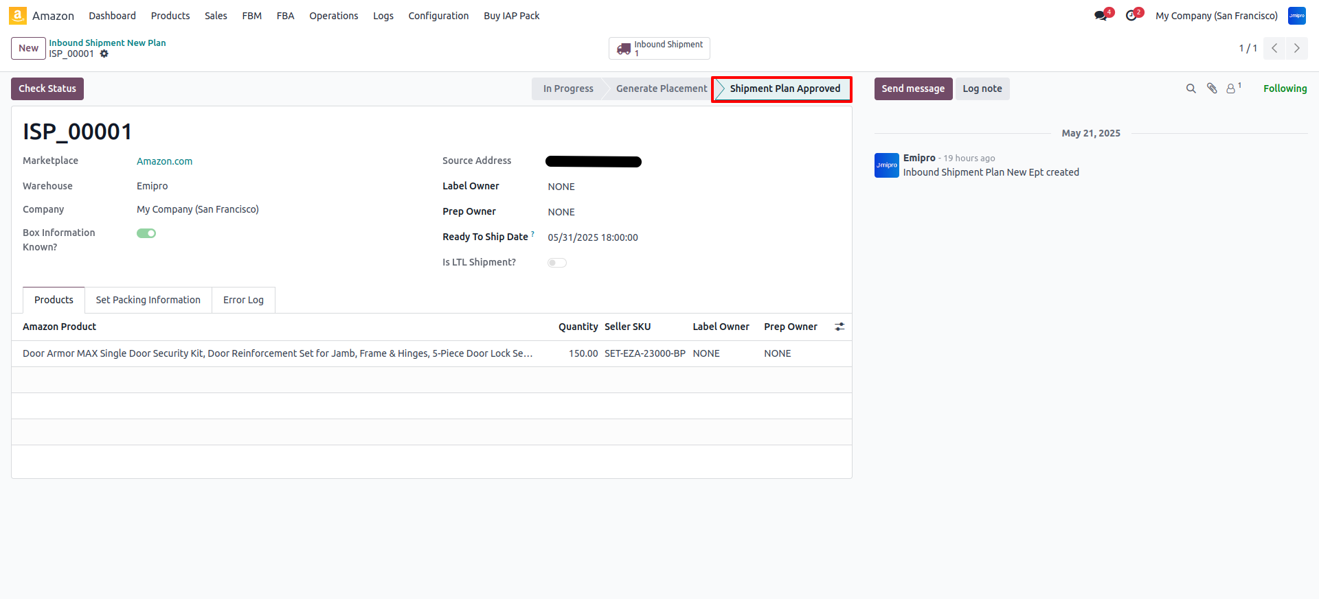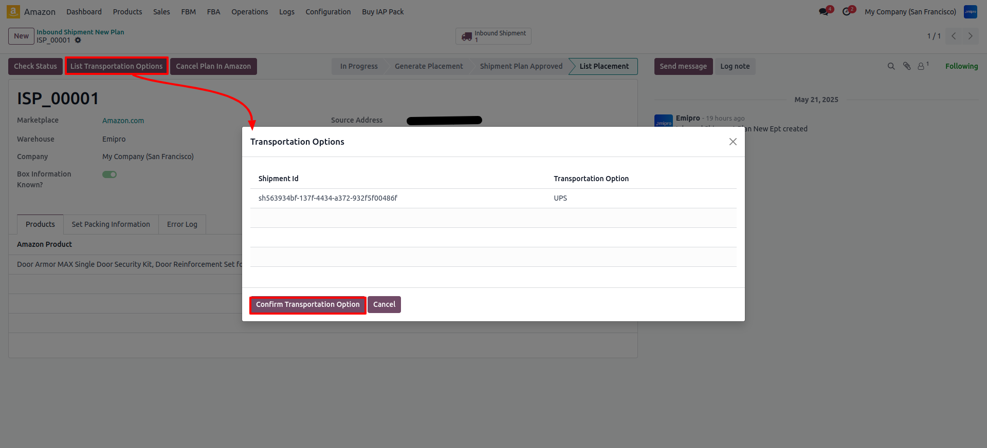 After confirming the transportation option, the inbound shipment plan will be approved.