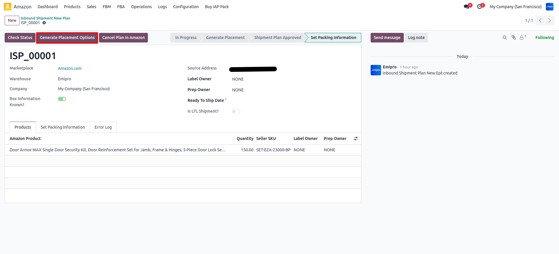 Create Inbound Shipment Plan