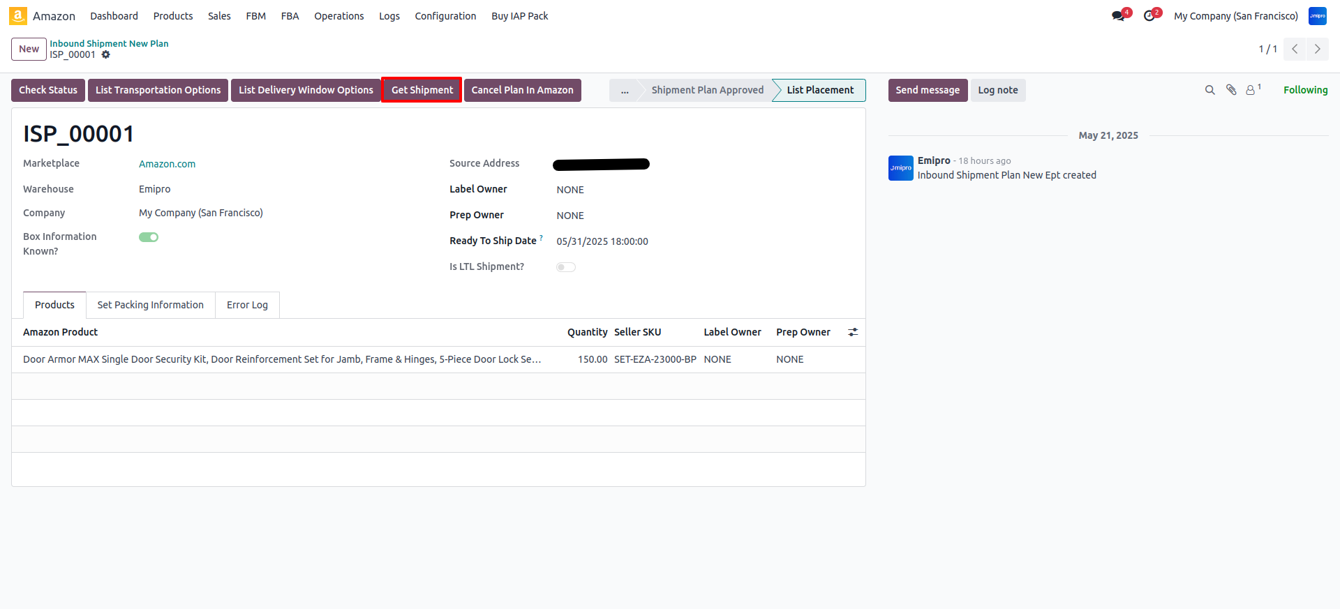 Click the Get Shipment button. The system will create shipment records in Odoo based on the shipment count selected in Step 5.