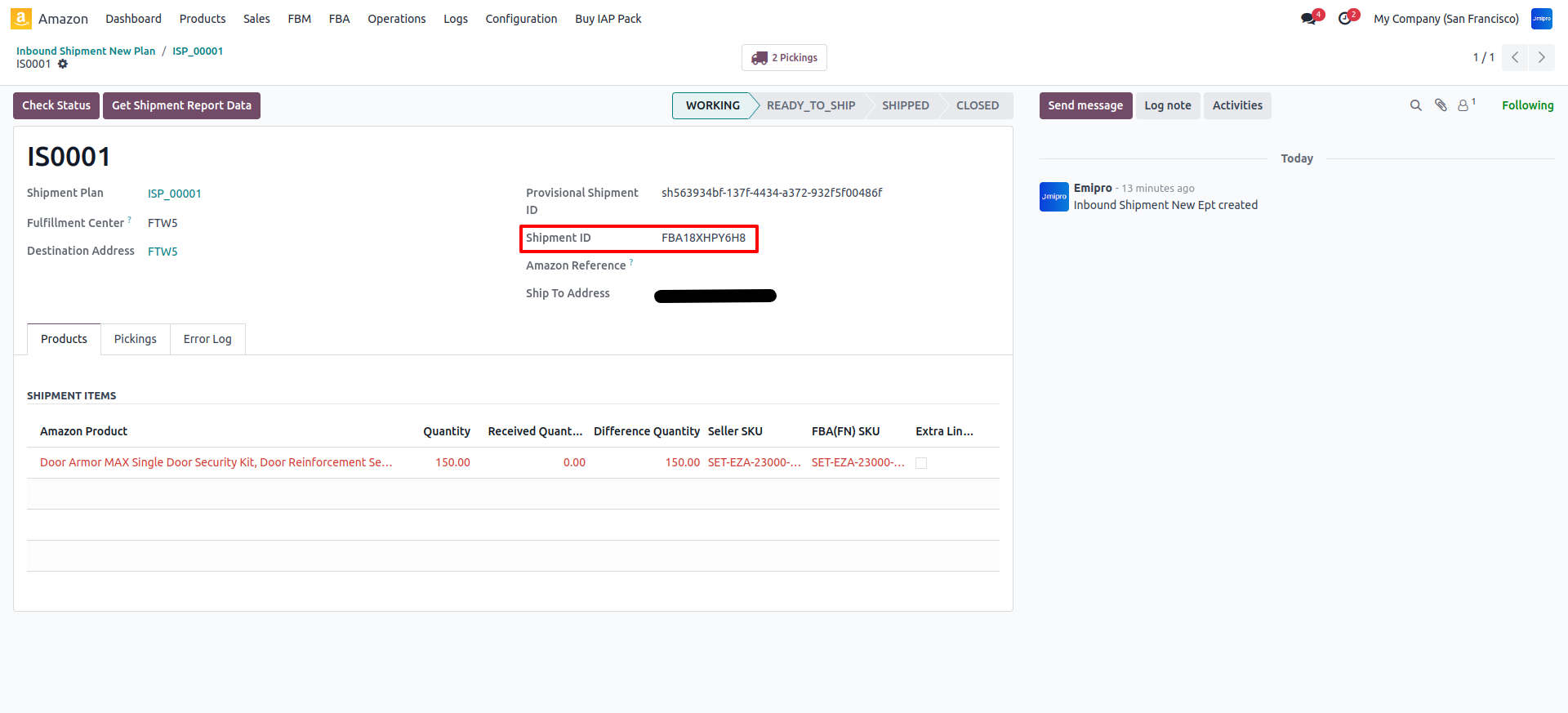 After that, you can verify that the shipment now has a Shipment ID set in the inbound shipment.