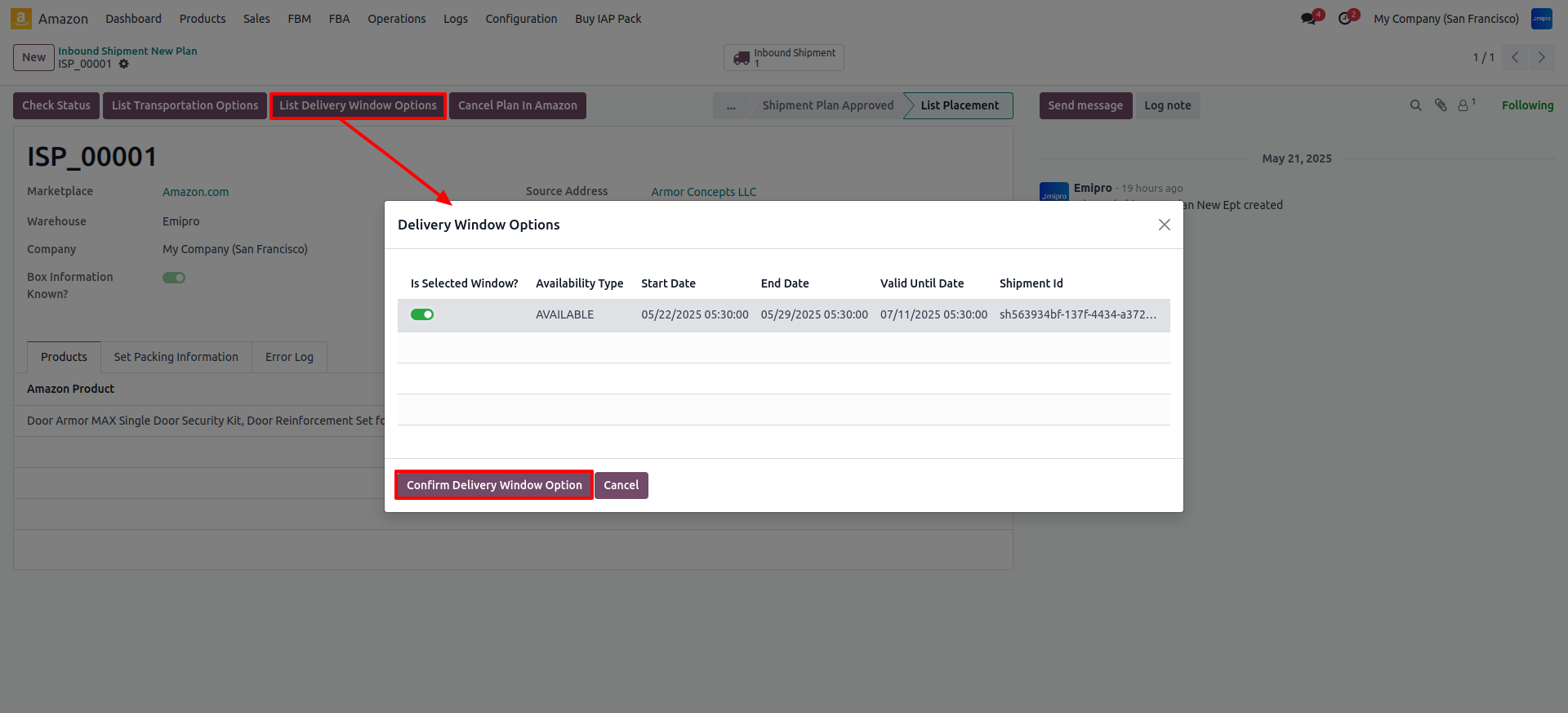 - You need to select one delivery window per shipment from the list and then click the Confirm Delivery Window Option button.