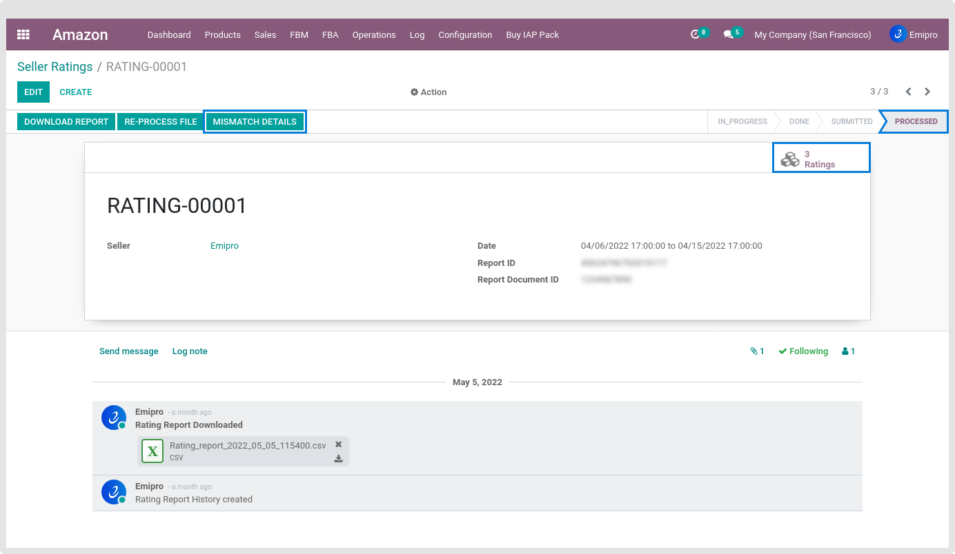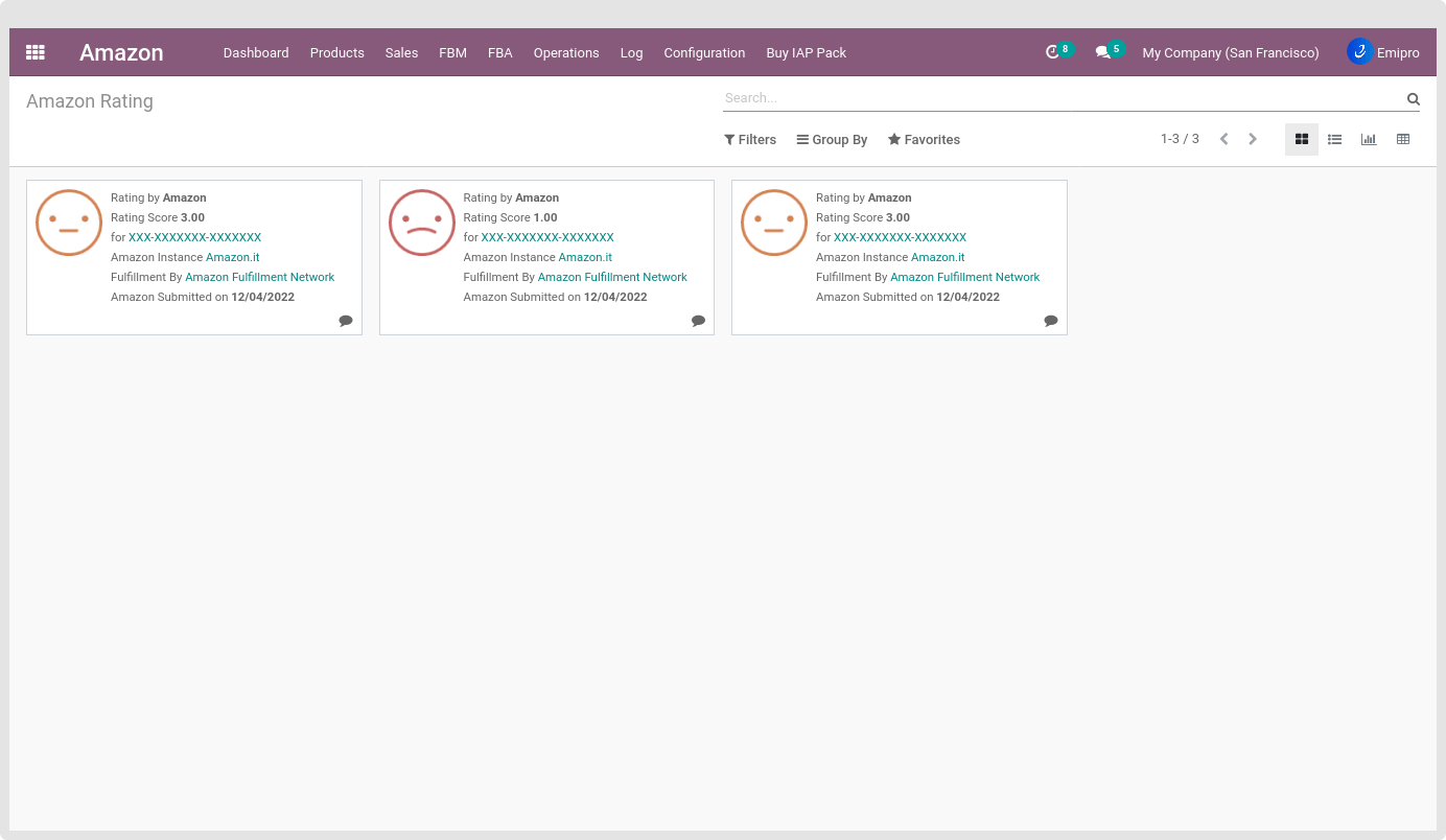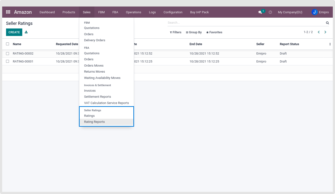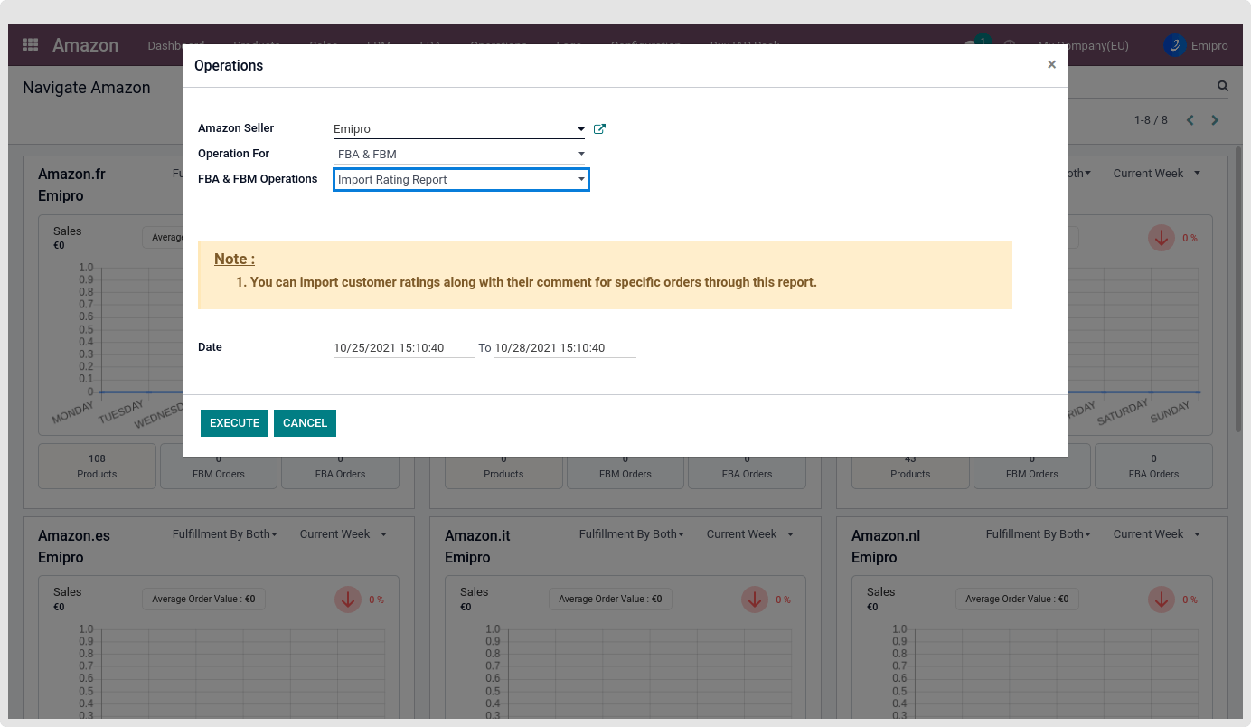 - With this operation, the user can import seller ratings for all the orders which are having ratings equal to 3 or less. There are 2 ways to import seller ratings in Odoo from Amazon: